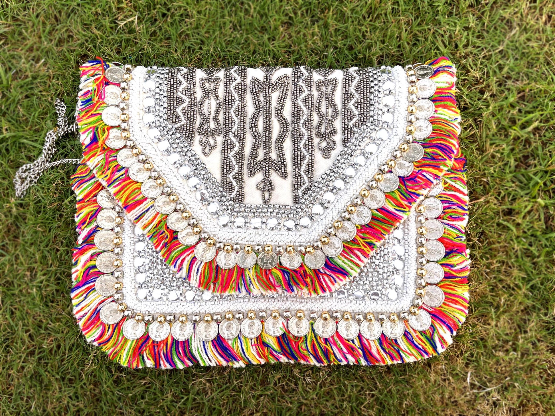 Boho Handcrafted Jute Bag, Banjara Bag, Designer Bag, Bohemian Bag, Coin Bags, Shell Jute Bag clutch, Christmas Gift, Gift, Bag, Sling Bag