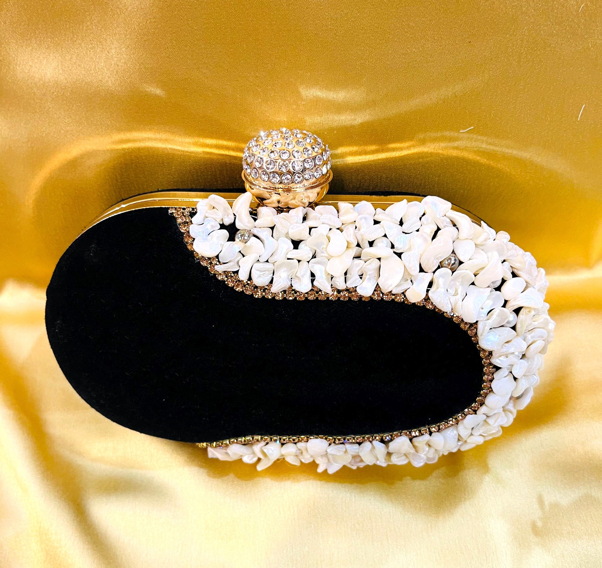 Elegant and Beautiful Black and White Oval Clutch Box Bag for Wedding | Parties | Cocktail | Prom | Gift