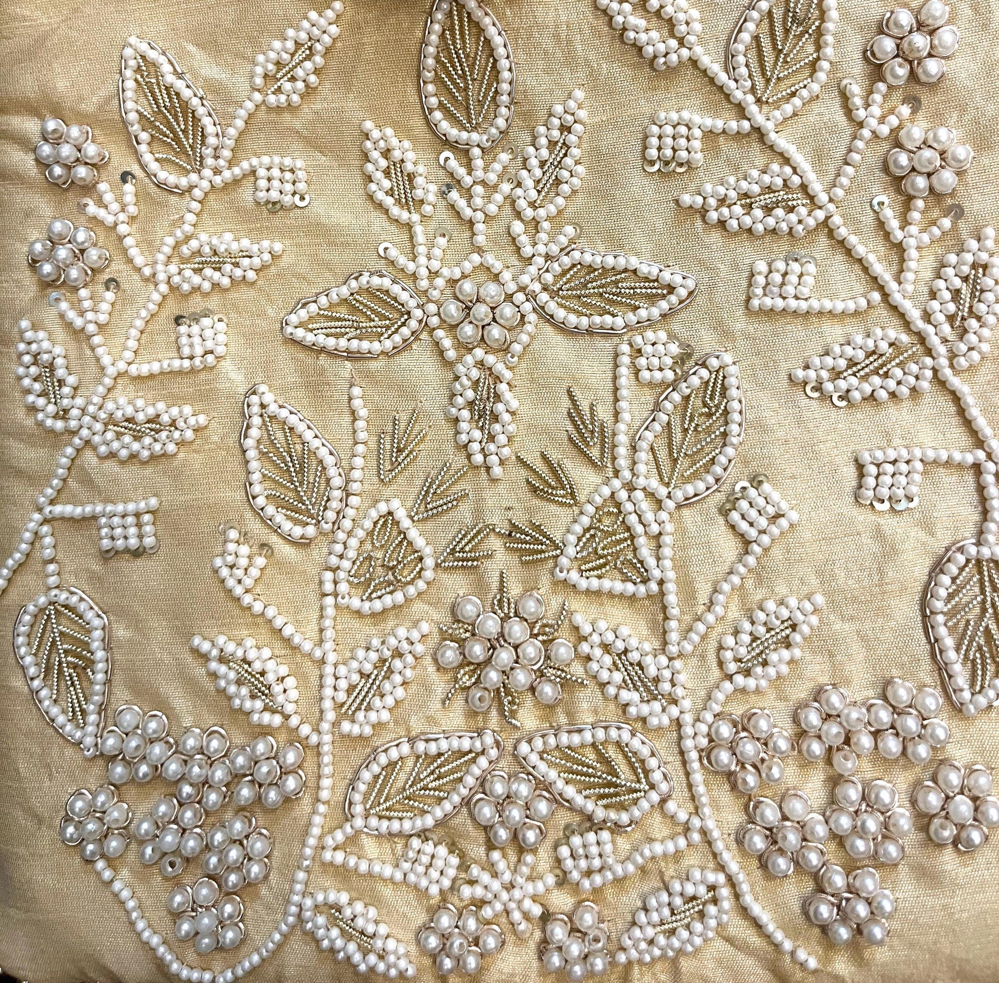 Embroidered Bridal Clutch: Handmade Beaded Wedding Handbag, Beige Potli Bag