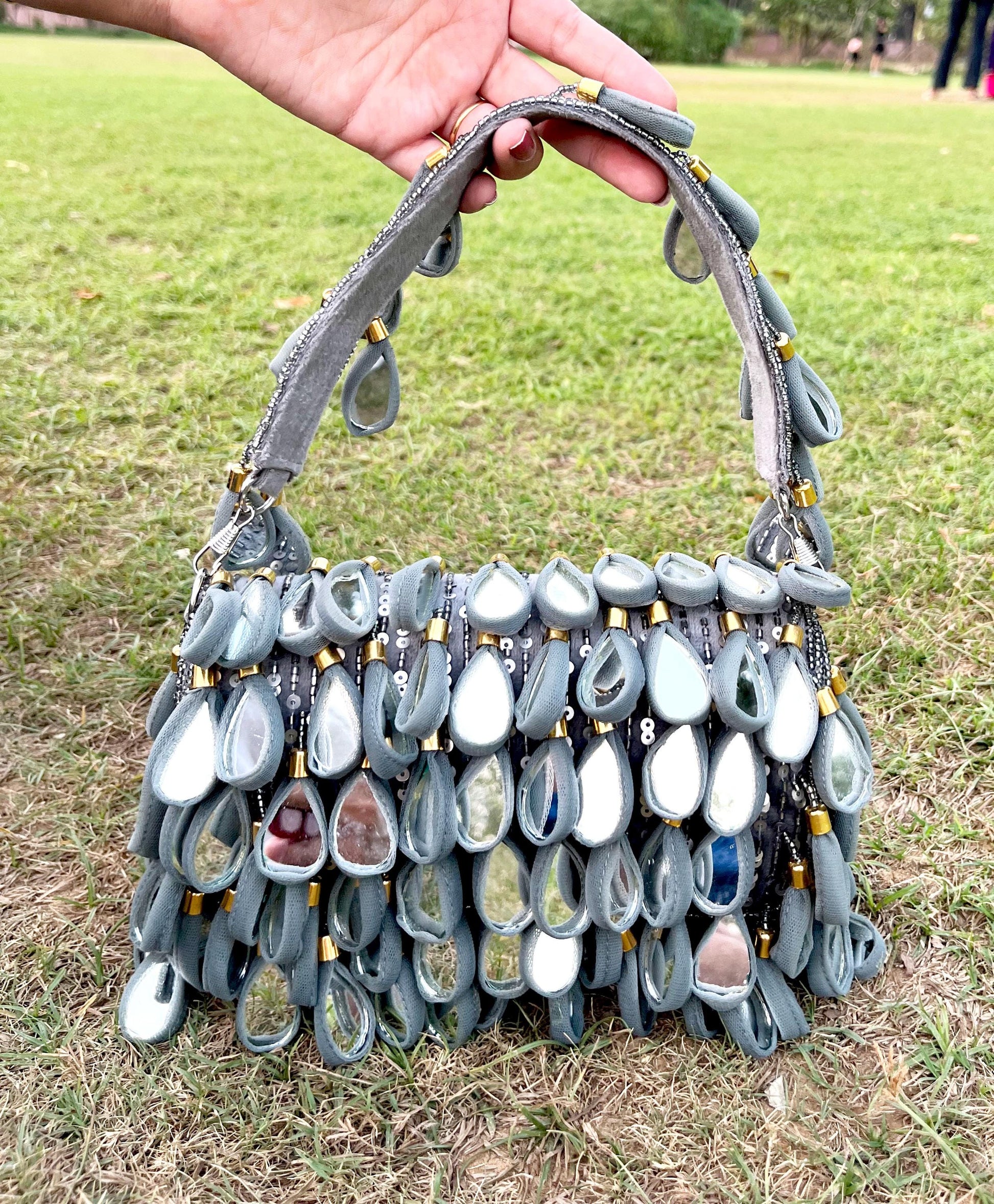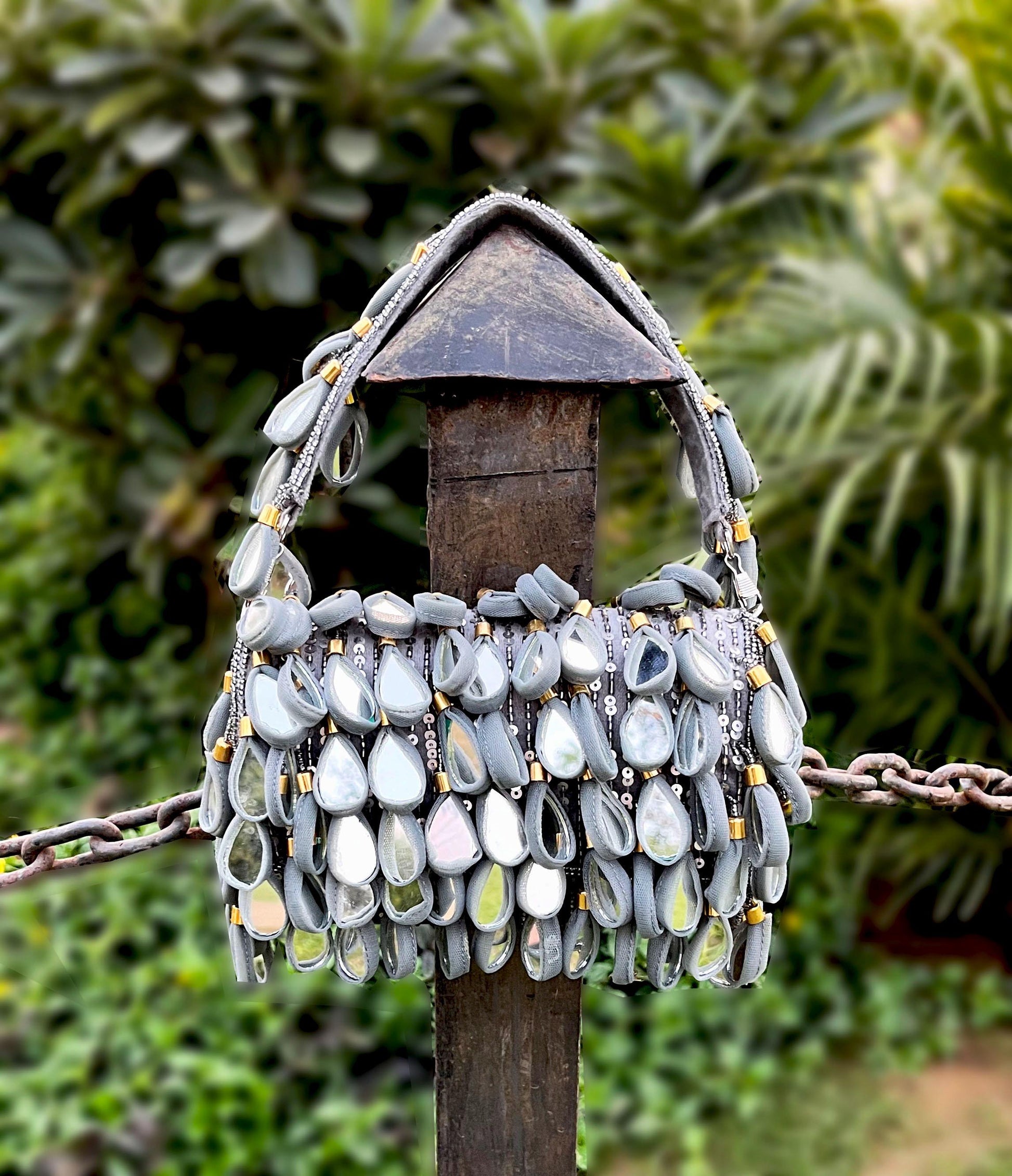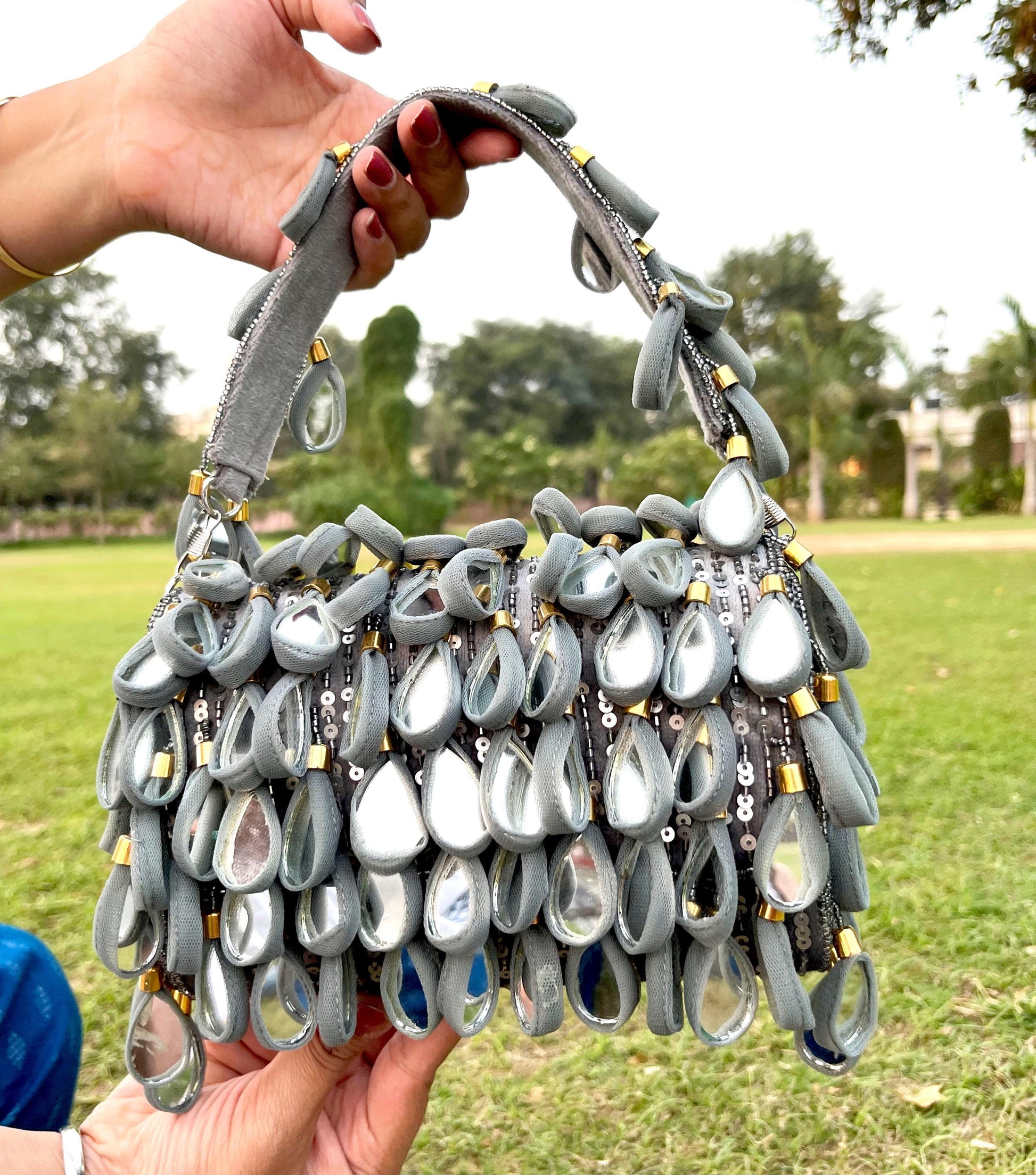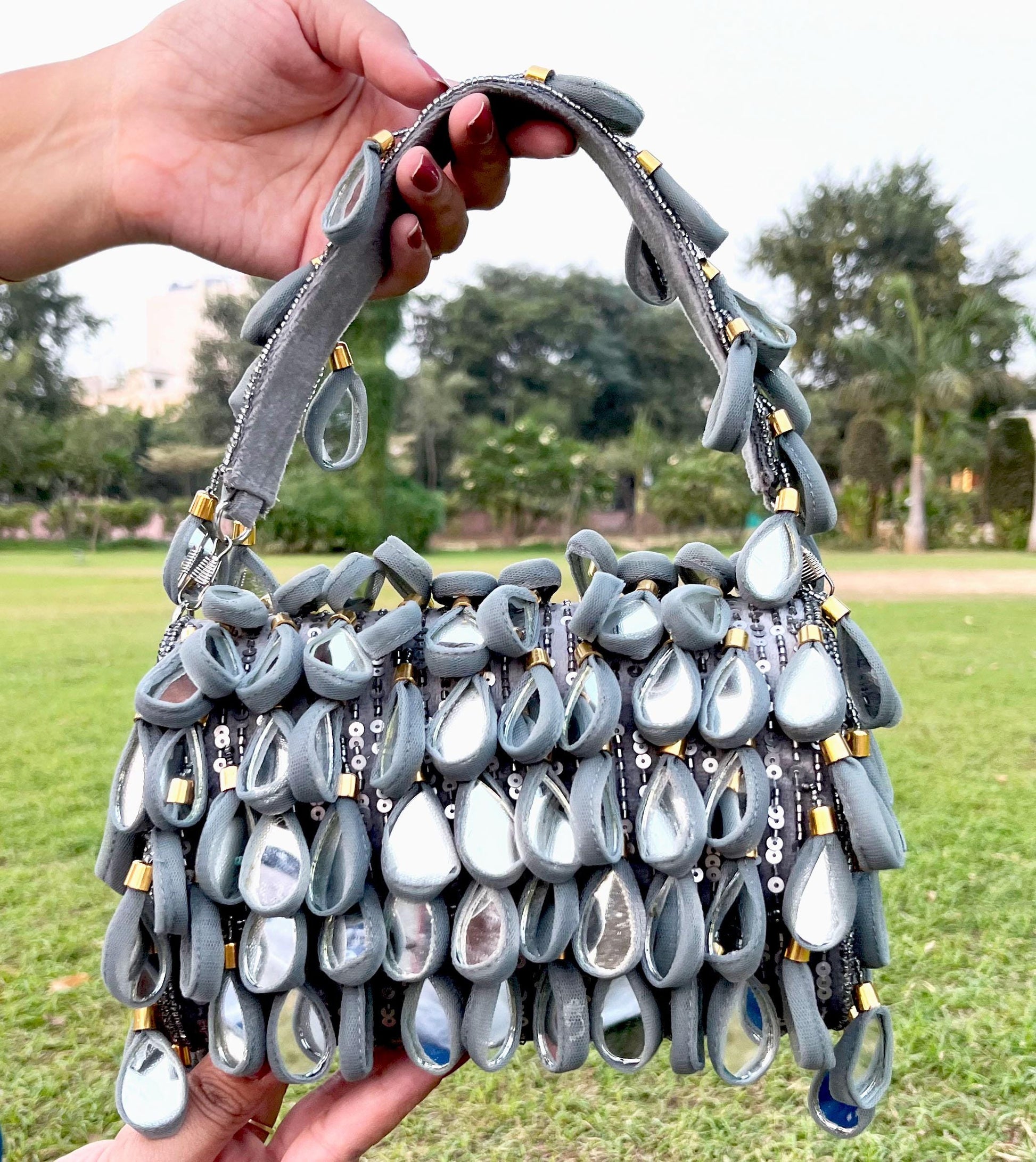 Grey Mirror Sequence Clutch bag with Magnetic Closure for Bridal and wedding