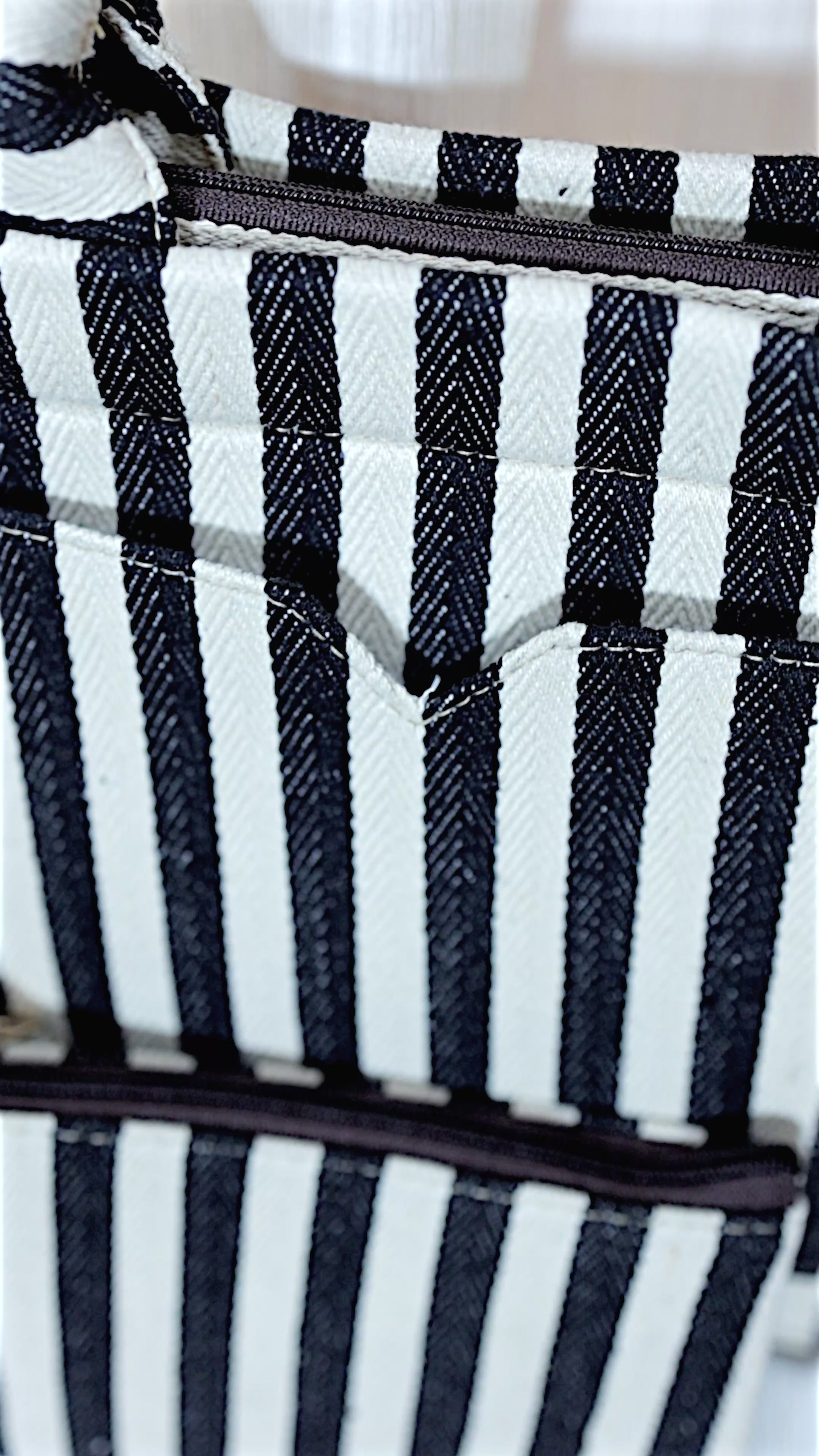 ✨ Handcrafted Black & Ivory Striped Tote Bag