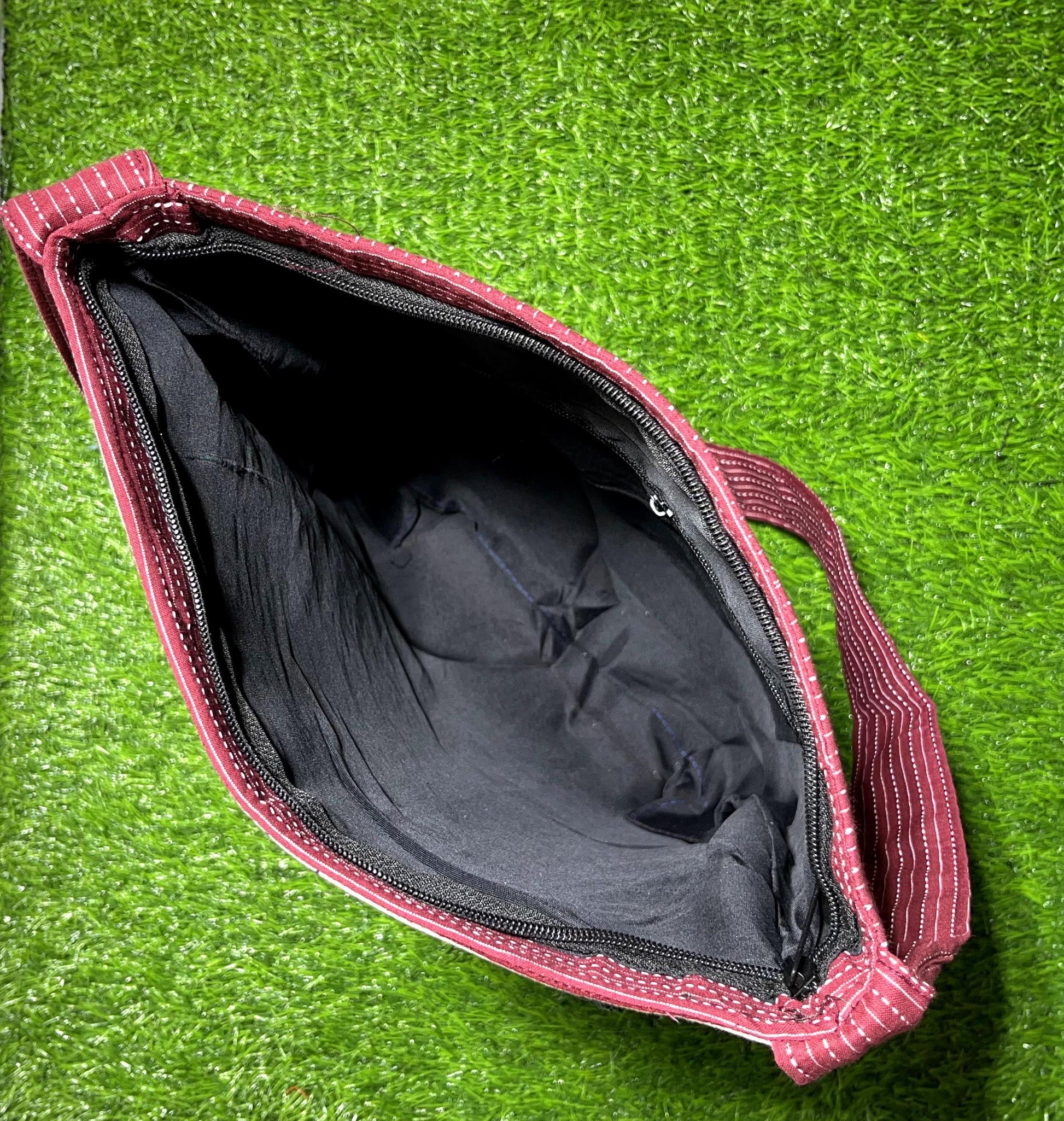 Handcrafted Ajrakh Patchwork Tote Bag: Single Partition Cotton Fabric