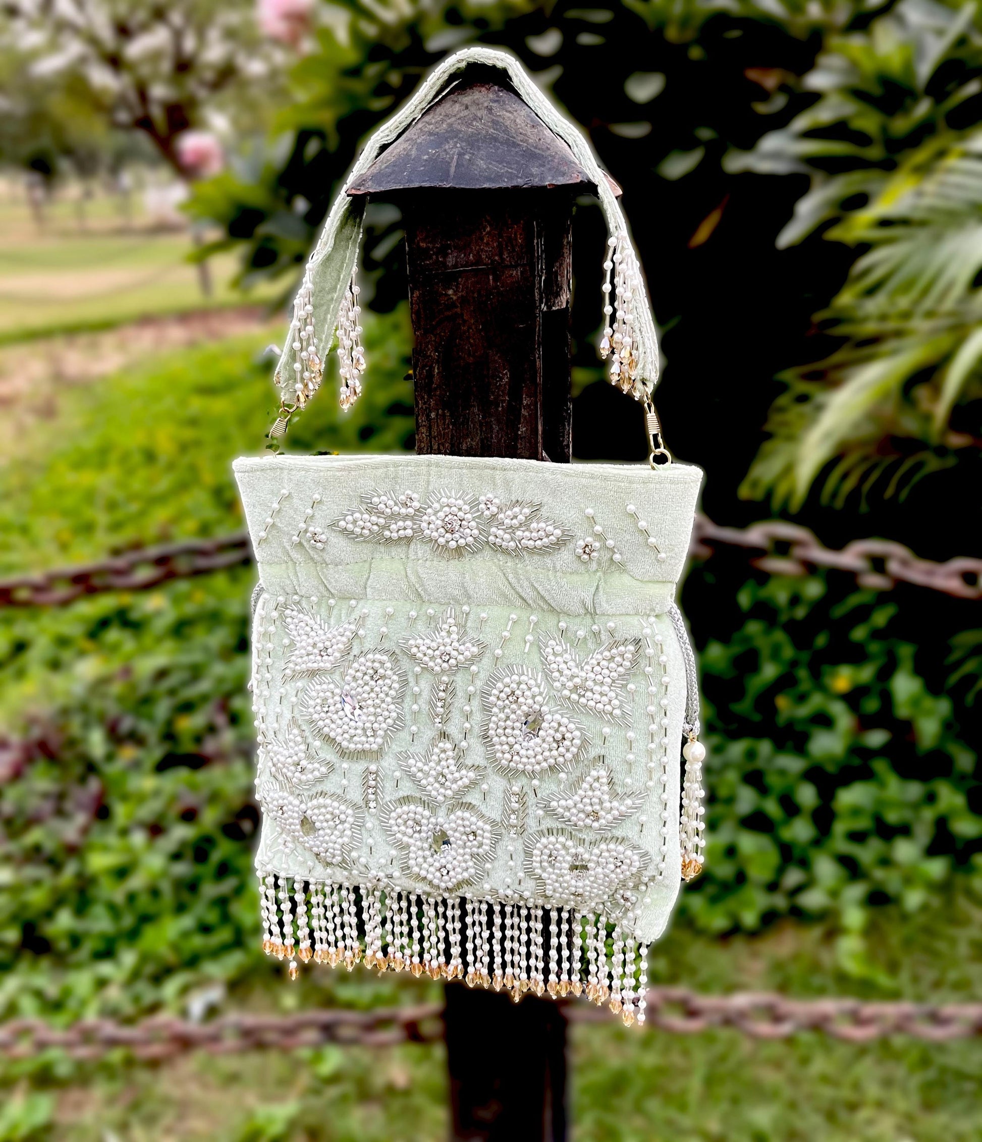 Handcrafted Beaded Potli Bag: Green Bridal Clutch