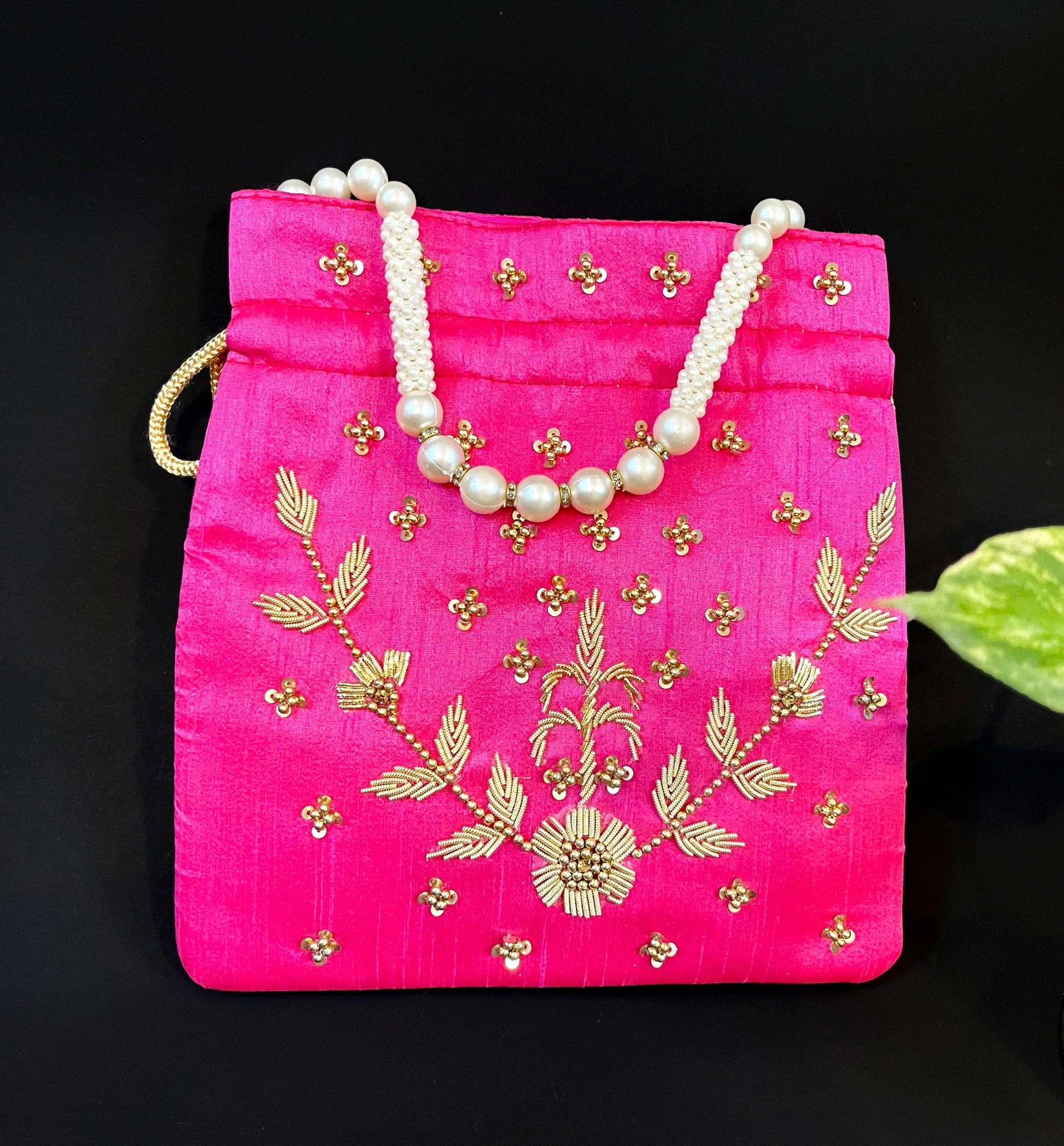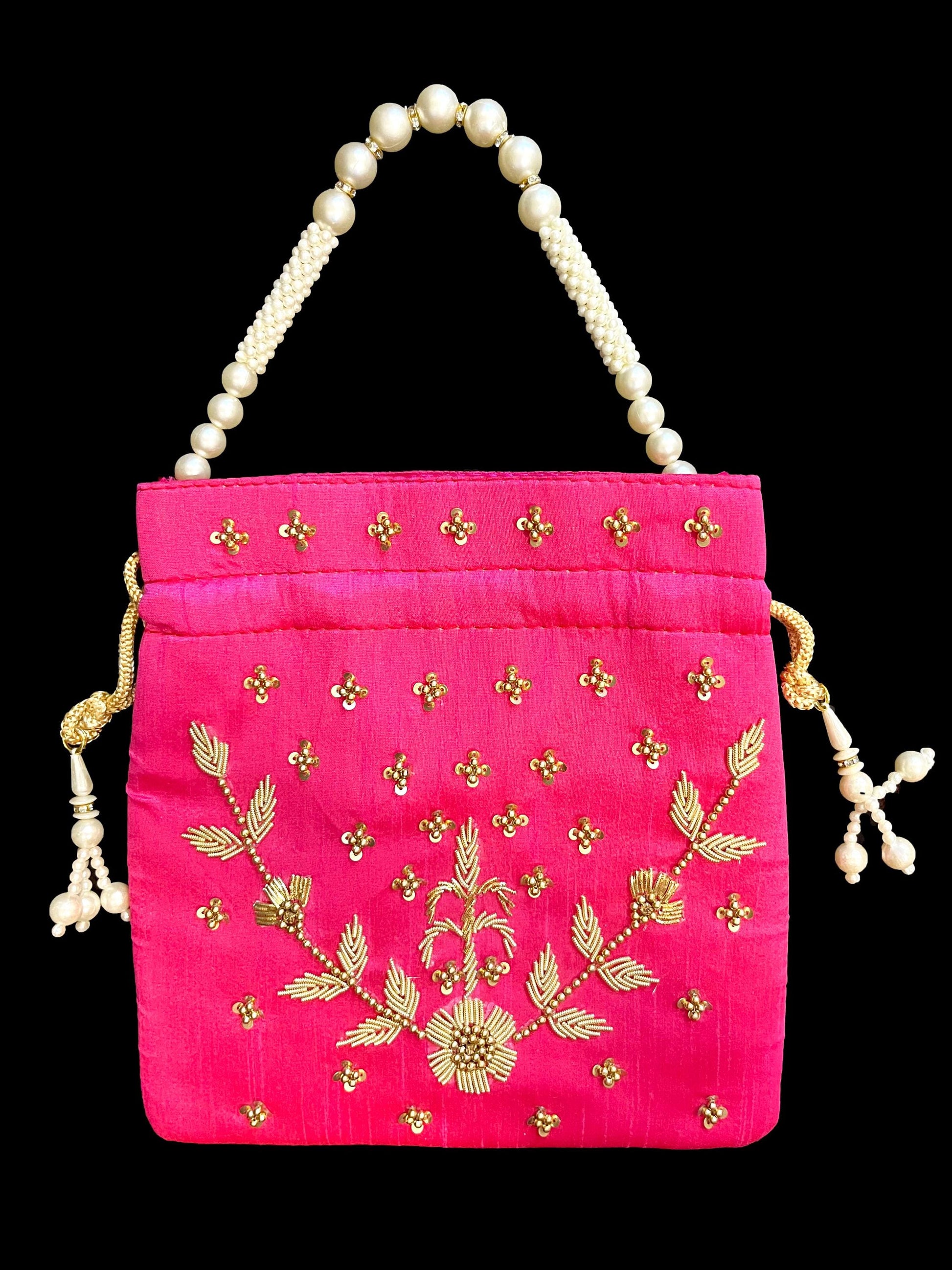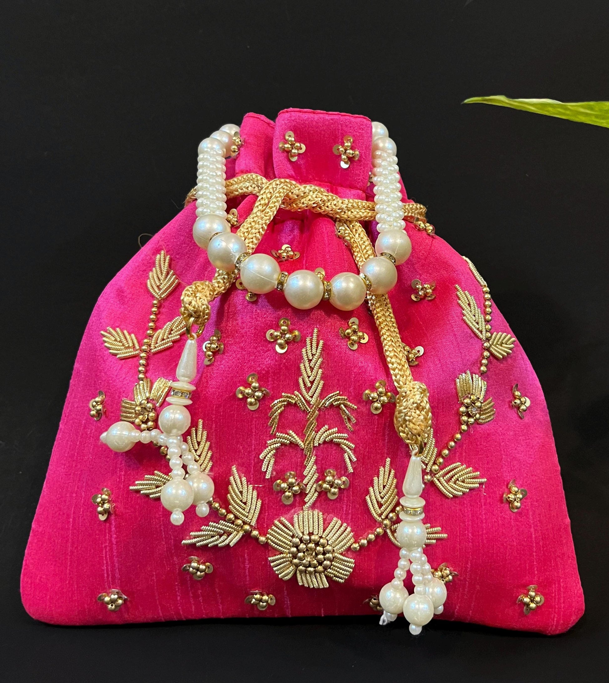 Pink Zardosi Potli Bag: Indian Wedding Favor Bridal Purse